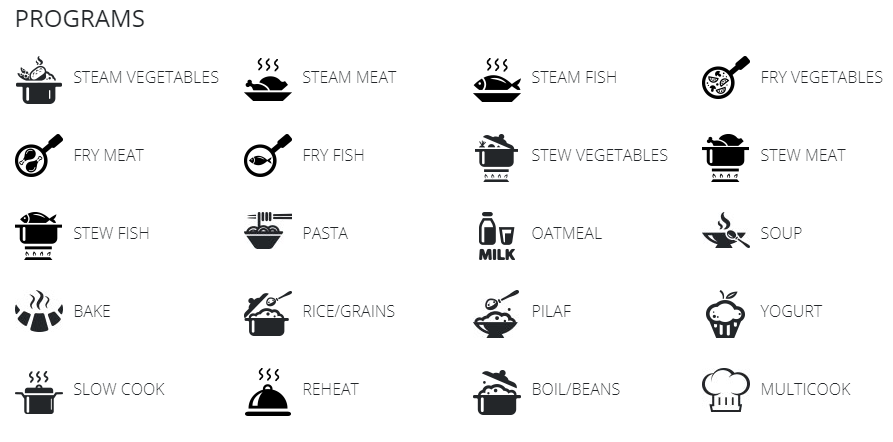 • Number of programs: 48 programs (20 automatic, 28 manual)